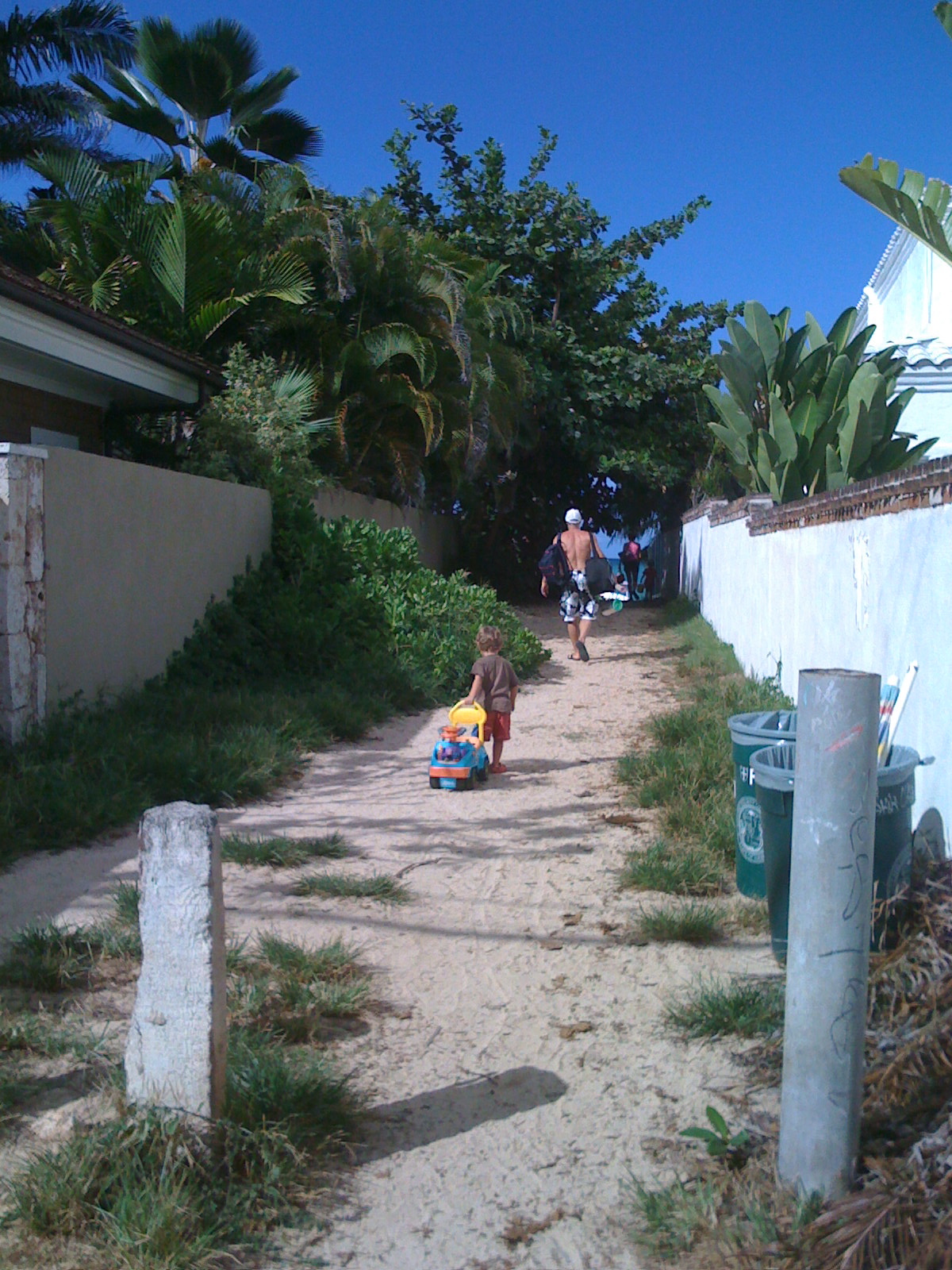 We circled the area for a while trying to figure out how to get to the beach, eventually parking on a little patch of grass between houses. We’d read about Lanikai in the book Oahu Revealed and it had documented a handful of the little pathways to use to get to the beach. We found one of them and at first I was like ‘what the heck is this?’ It looked like an alley to nowhere and there were even some garbage cans lining the way. I was very skeptical. But when we emerged on the other side I was taken aback by the dramatic almost cinematic appearance of this stretch of beach that seemed as quiet and gentle as the quantum space beach Jodi Foster visited in the movie Contact.