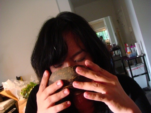 We also had awa for the first time. Mark was straining it by hand for awhile before we ate. Kalei warned us that it doesn’t taste good and if she hadn’t I might have thought so. But you’re meant to drink it all down at once before a meal. It has a relaxing effect and prepares your body for the big meal ahead. Mark said that some people even use it to help them sleep. I drank it all and it wasn’t so bad…what was nice was the novocaine like effect afterwards. K wondered later ‘can you become an awa-holic?’ Mark answered ‘yes’.